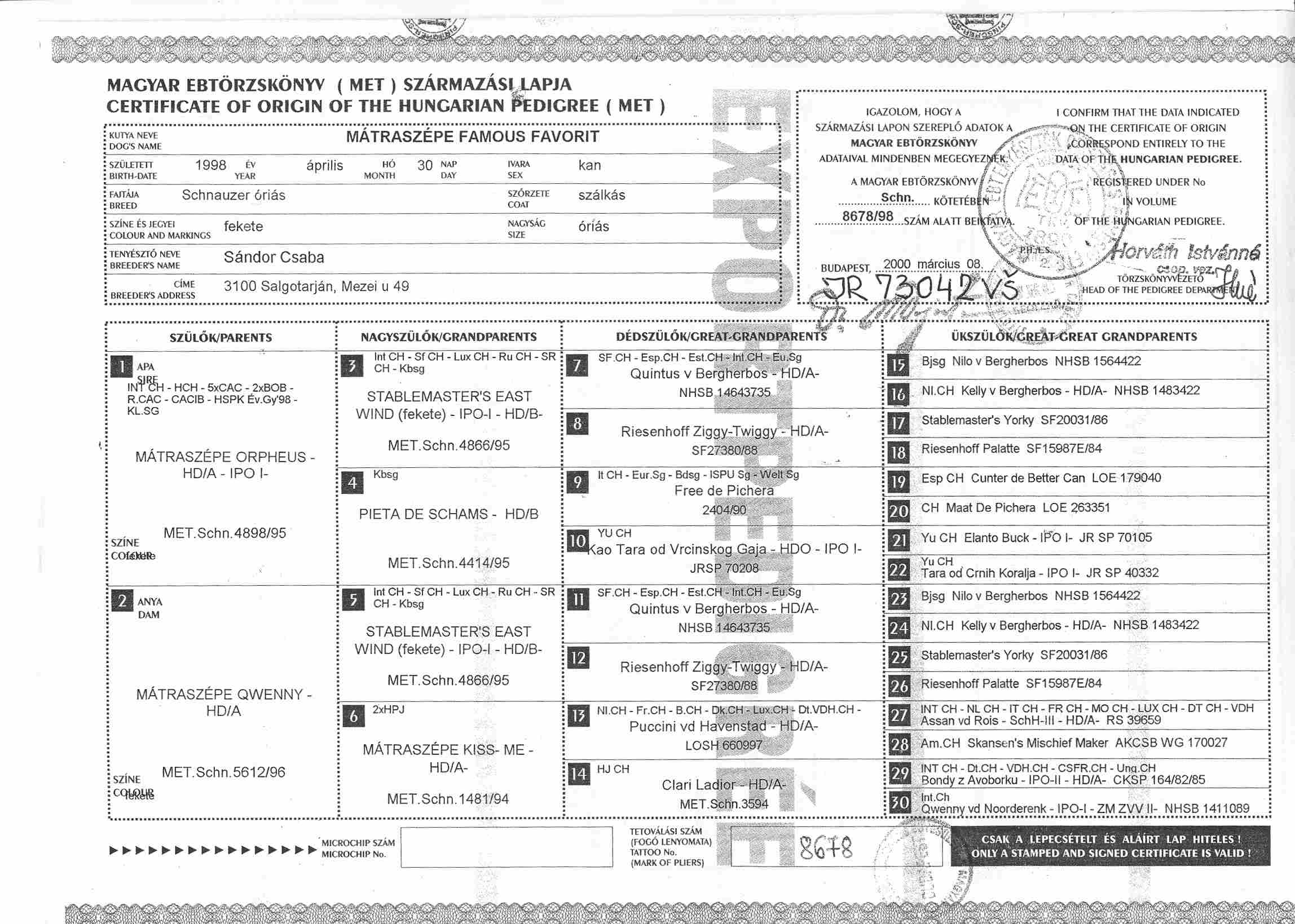 Pedigree von Matraszepe Famous Favorit