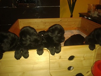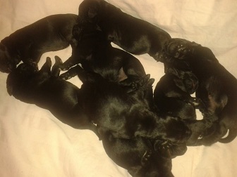 Am 30.10.2014 kamen aus dieser Verpaarung 5 Rüden und 4 Hündinnen zur Welt.